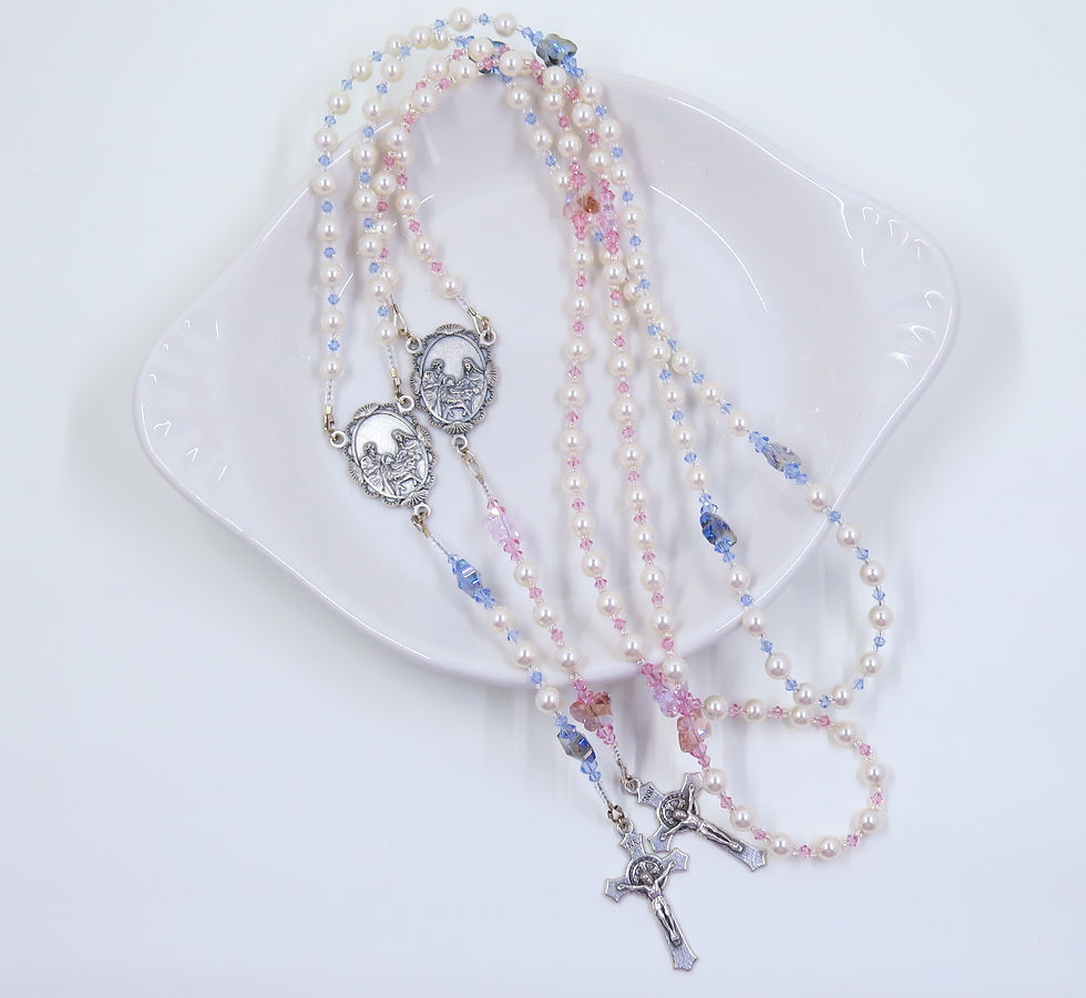 Our Special Designs are created with premium materials, like Swarovski pearls, Swarovski crystals, rosewood, olive wood, and genuine gemstones. They are perfect as gifts for Baptisms, First Communion, Confirmation, Weddings, Ordinations, Birthdays, Mother's Day, Father's Day, and Christmas. These are Rosaries that will be cherished for years to come!